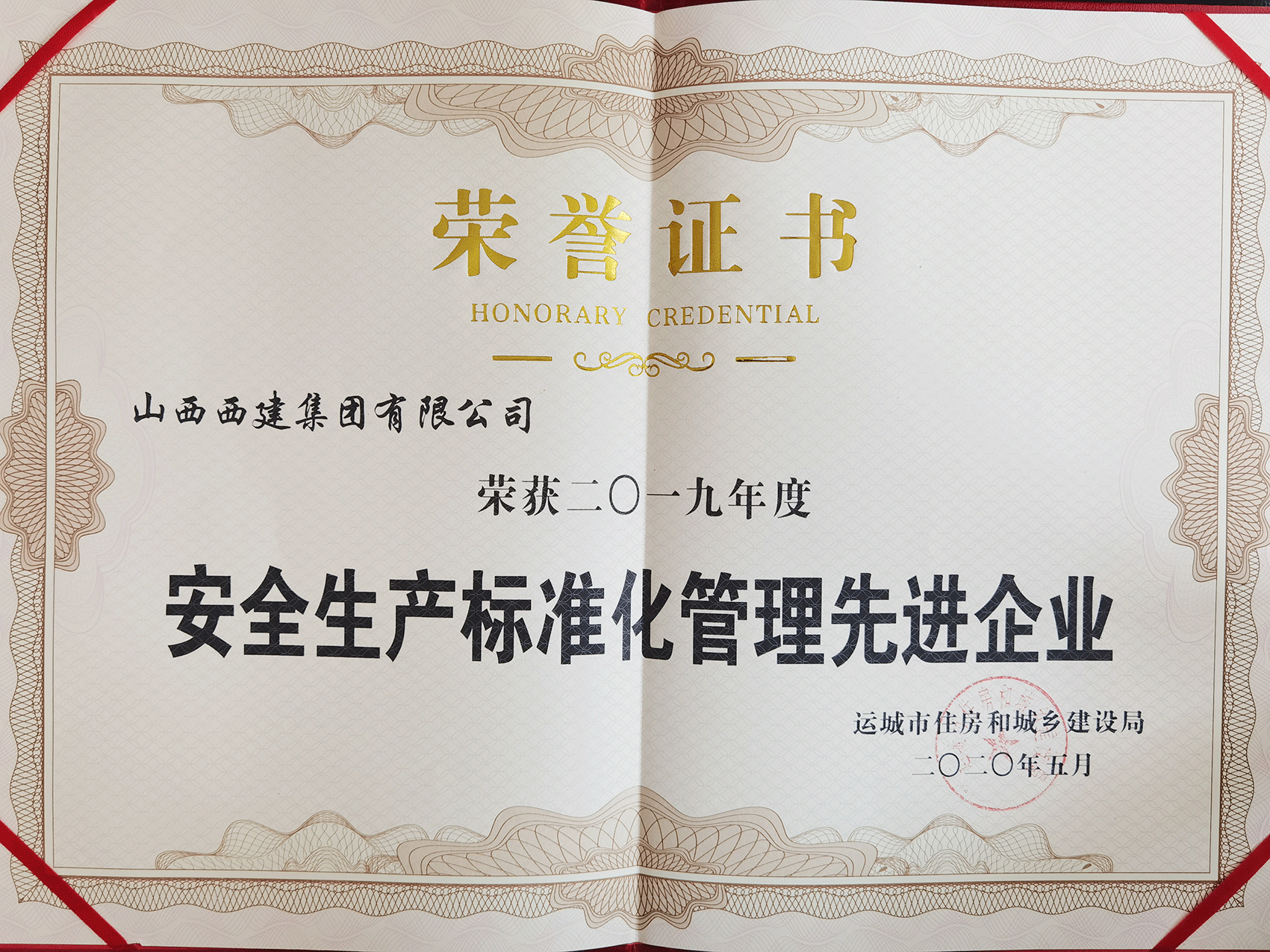 ▲山西西建集團有限公司榮獲“2019年度安全生產標準化管理先進企業(yè)”