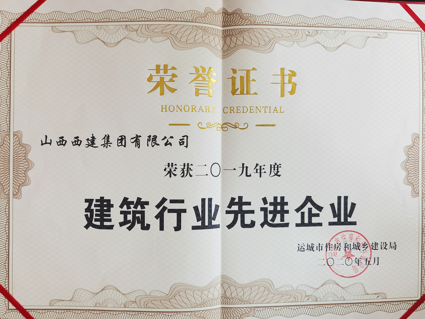 ▲山西西建集團有限公司榮獲“2019年度建筑行業(yè)先進企業(yè)”