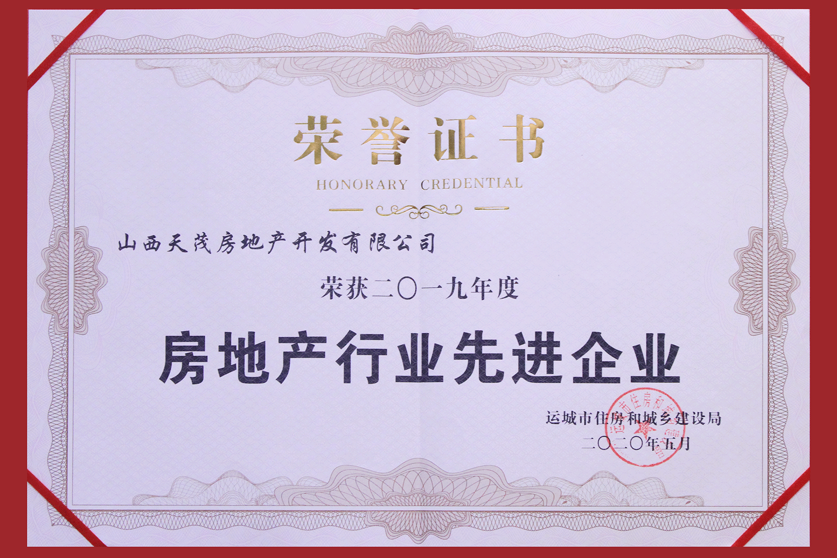▲山西天茂房地產開發(fā)有限公司榮獲“2019年度房地產行業(yè)先進企業(yè)”