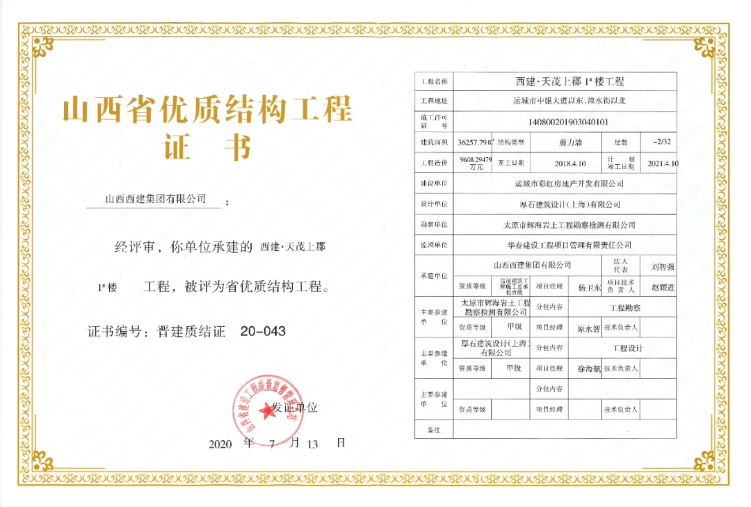 西建集團2020續(xù)寫榮耀傳奇,再度斬獲7項省優(yōu)質(zhì)結(jié)構(gòu)工程獎