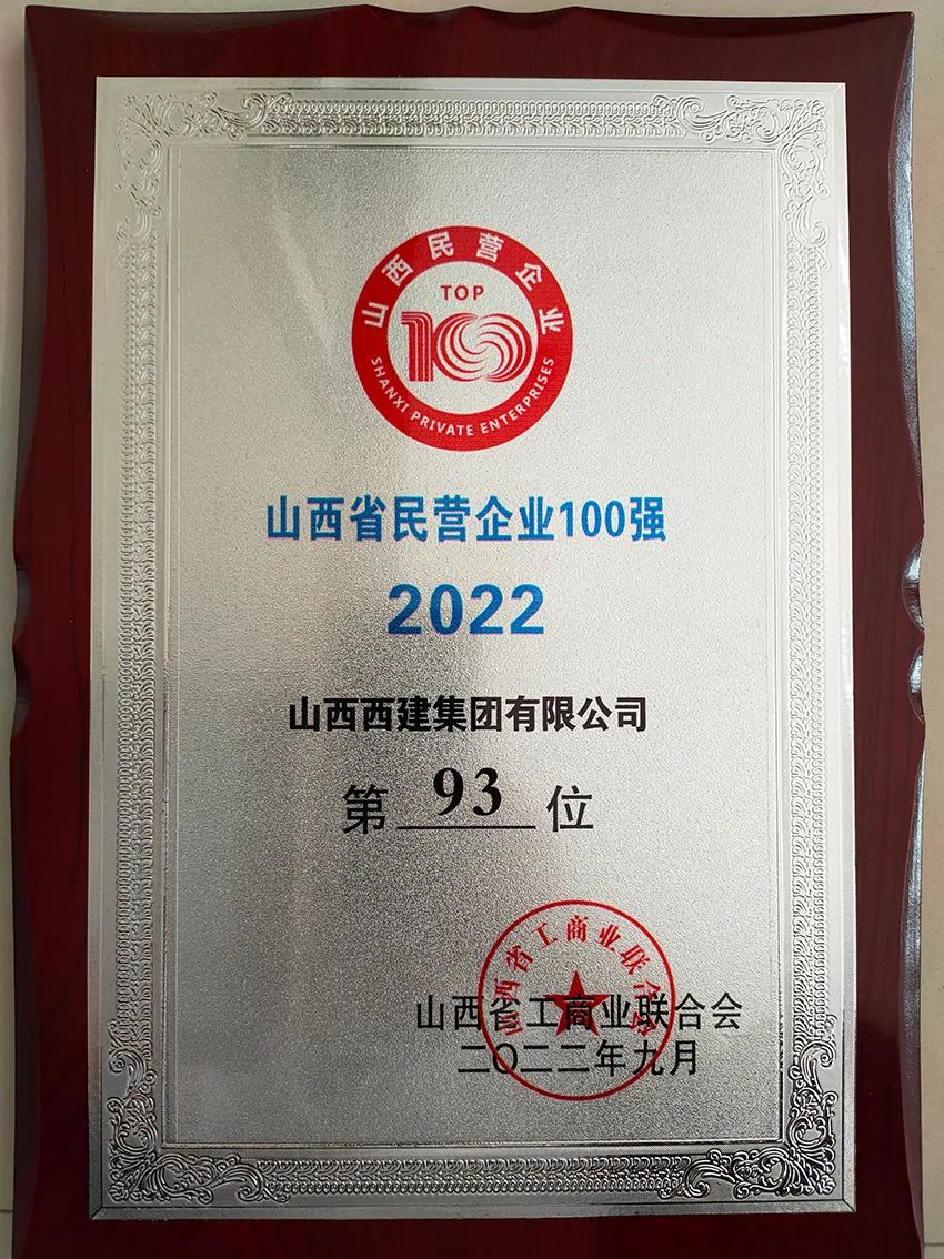 9月26日,2022山西省民營(yíng)企業(yè)100強(qiáng)發(fā)布會(huì)舉行,會(huì)上發(fā)布了“2022山西省民營(yíng)企業(yè)100強(qiáng)”系列榜單,西建集團(tuán)是運(yùn)城市唯一一家上榜的房產(chǎn)企業(yè)。